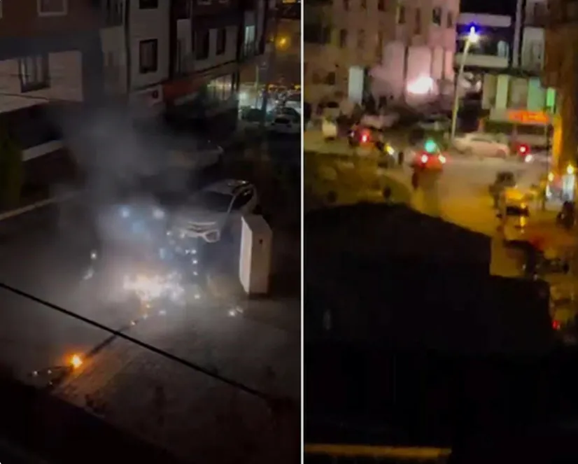 Yaşanan olayın ardından çevrede bulunanlar, zarar görmemesi için otomobillerini bulundukları yerden çekmeye çalıştı. O anlar cep telefonu kamerasıyla kaydedildi.