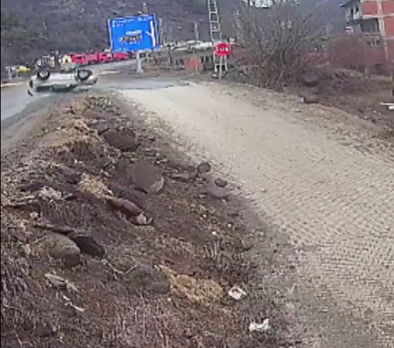 Artvin’de taklalar atarak devrilen otomobilin sürücüsü Bilal Dede (30) yaralanırken, kaza anı ise güvenlik kamerası tarafından anbean kaydedildi.