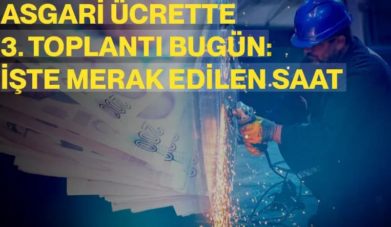 2026 yılı asgari ücretini belirleyecek toplantı bugün saat 18:00'de yapılacak. Çalışma ve Sosyal Güvenlik Bakanlığı'ndan yapılan açıklamada, üçüncü toplantının bugün saat 18:00'de yapılacağı bildirildi.