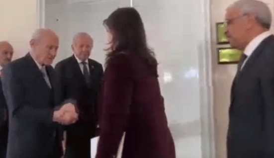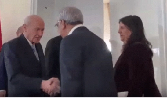 MHP lideri Bahçeli, DEM Parti heyetini odasının kapısında karşıladı.