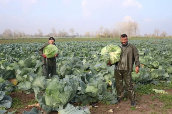 Yağmur, çamur, sıcak soğuk demeden bin bir emekle toplanan lahanalar, hem iç piyasaya gönderiliyor hem de turşuluk olarak değerlendirilmek üzere hazırlanıyor.