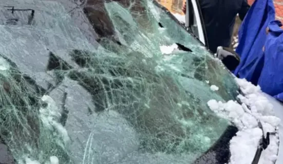 Çatıdan düşen kar otomobili hurdaya çevirdi