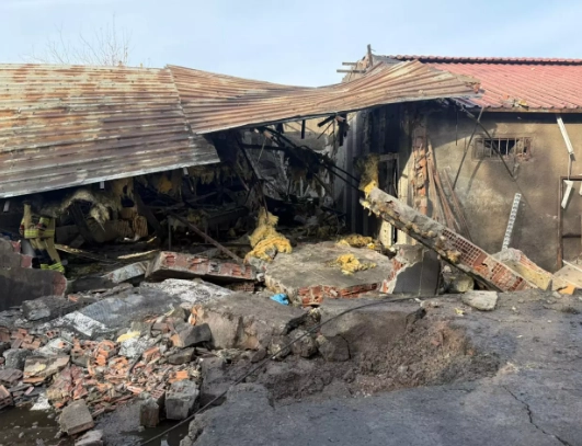 Patlamanın etkisiyle duvarlarında çökme meydana gelen tesis, hasar gördü.