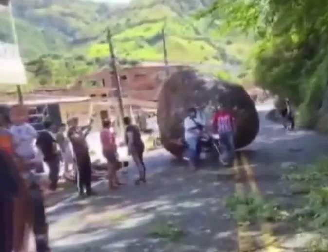 Çevredekiler tarafından çekilen görüntülerde, yolda duran kişilerin, yamaçtan gelen seslerin ardından yukarı baktıkları ve ardından hızla bulundukları noktadan uzaklaştığı, dev kaya parçasının ise birkaç saniye sonra yola düştüğü görüldü.