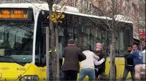 Üsküdar'da İETT şoförü otobüs camından çıkıp kavgaya karıştı