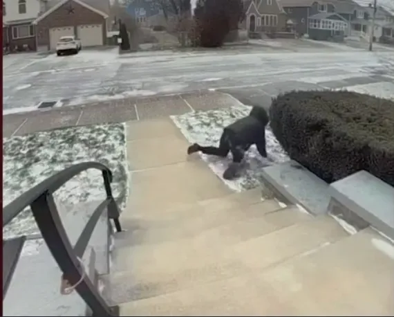 Şiddetli rüzgar yaşlı kadını yere savurdu ve kadın merdivenlerden bu şekilde düştü, inanılmaz görüntüler güvenlik kamerasına anbean böyle yansıdı.