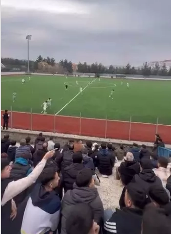 Bir taraftar, sahanın yakınlarındaki bir apartmanın çatısına uzanarak karşılaşmayı izledi. O anlar cep telefonu kamerasına yansıdı.