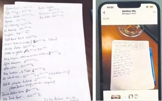 Kaçmaz'ın telefonunda bulunan iki ayrı listede Şile Belediyesi'ne işi düşen esnaf, iş adamı ve müteahhitlerden alınan milyonlarca lira rüşvetin çetelesinin tutulduğu, bir diğer belgede ise alınan rüşvetlerin harcandığı yerlerin listelendiği görüldü.