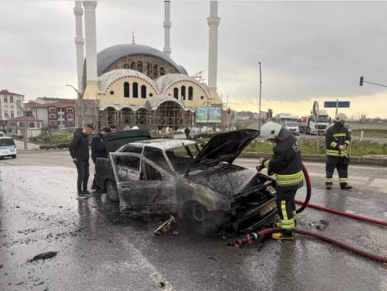 Durumu gören vatandaşlar olayı itfaiye ekiplerine bildirdi. Kısa sürede olay yerine gelen itfaiye ekipleri, otomobilde çıkan yangını kontrol altında aldı.