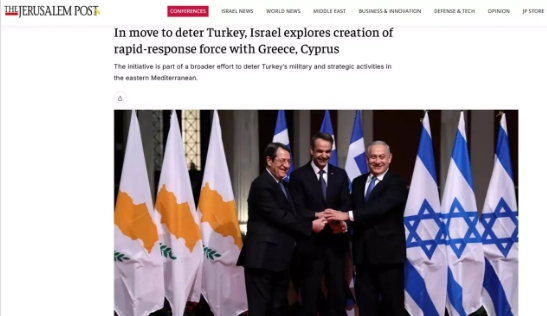 Konuyla ilgili bilgi veren 3 kaynağa dayandırılan haberde, İsrail, Yunanistan ve Kıbrıs'tan üst düzey yetkililerin üç ülkenin silahlı kuvvetlerine bağlı birliklerden oluşan bir hızlı müdahale gücü kurulması olasılığını değerlendirdiği belirtildi.