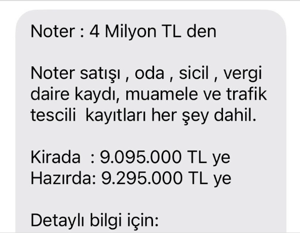 Geçtiğimiz Ekim ayında da galericiler 9,3 milyon liralık taksi plakasının noter satışında değerinin 4 milyon lira gösterileceğine dair SMS göndermiş ve sonrasında yasa dışı işlem yaptıklarını anladıkları için satış bedelinin gerçek değer üzerinden gösterileceğine dair SMS göndermeye başlamıştı.