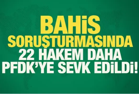 TFF, bahis soruşturması kapsamında 22 hakemin daha PFDK'ya sevk edildiğini duyurdu.