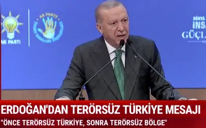 Türkiye olarak, tarihimizden devraldığımız güçlü mirasla dil, ırk, köken ayrımı yapmadan, başta gönül ve kültür coğrafyamız olmak üzere, tüm dünyada insan hak ve onurunu savunmaya; küresel barış ve güvenliğe en yüksek düzeyde katkı sunmaya devam edeceğiz. Eş zamanlı olarak yaklaşık yarım asırdır binlerce insanımızın hayatına mâl olan, refah ve istikrar yürüyüşümüzü sekteye uğratan terör musibetinden de milletimizi ebediyen kurtaracak adımları kararlılıkla atacağız.