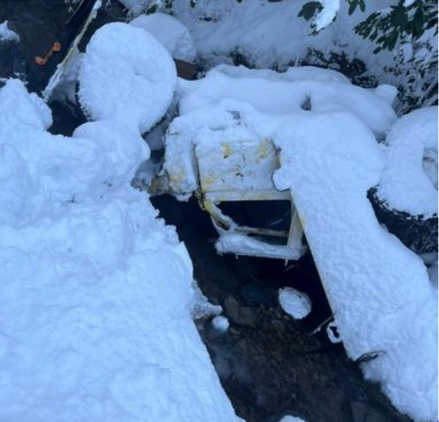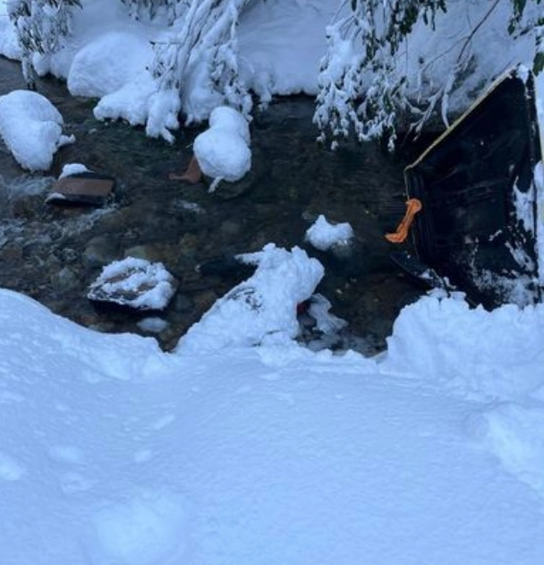 Ekiplerin yaptı aramalar sonucu Gürcüdüzü Yaylası yolu güzergahında, karla kaplı bölgede uçuruma yuvarlanan cip, derede bulundu.
