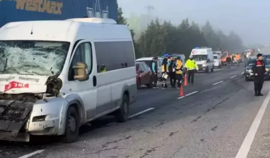 Edirne'de Edirne-Havsa D-100 kara yolunun 32. kilometresi, Sazlıdere köyü yakınlarında 10 aracın karıştığı zincirleme trafik kazası meydana geldi.