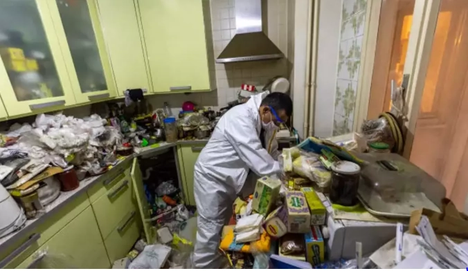 Daireden 4 kamyon dolusu atık eşya ve çöp çıkarıldı, daha sonra evde temizlik çalışması yapıldı.