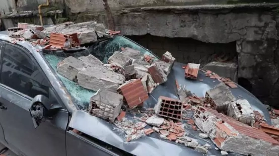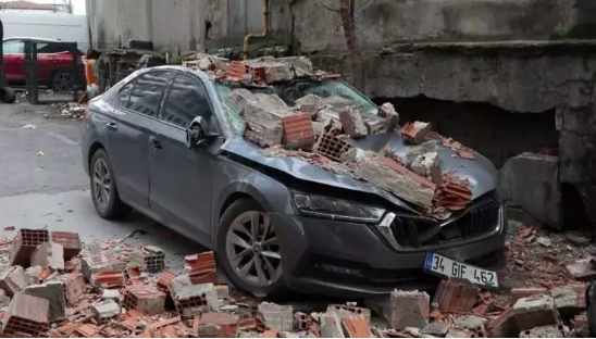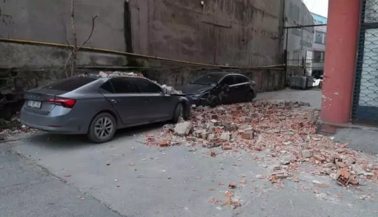 Duvar parçaları park halindeki araçların üzerine düşerken, olayda can kaybı ya da yaralanma yaşanmadı. İhbar üzerine polis ekipleri bölgeye geldi.