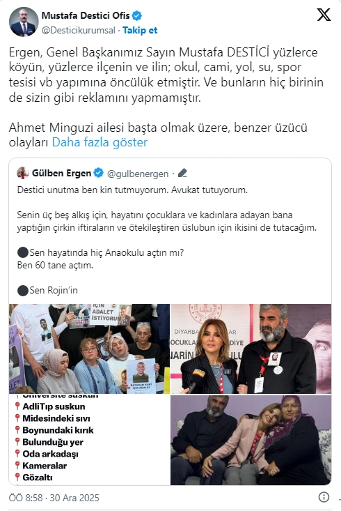 Gülben Ergen ile yaşanan polemik giderek büyürken Mustafa Destici Ofisi ise Ergen’e yeni bir cevap yayımladı;