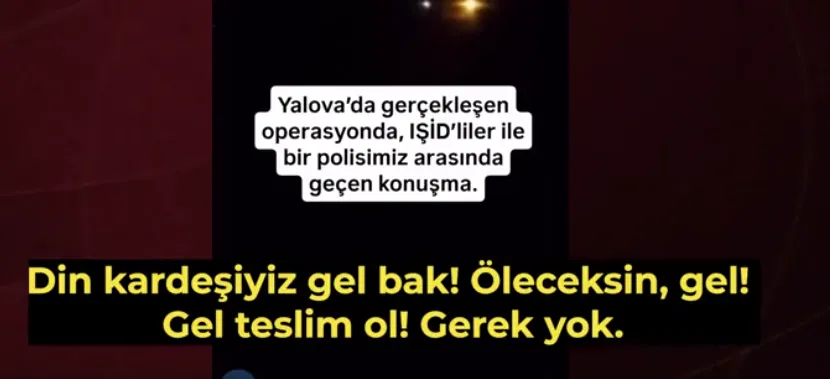 Polisin “Gel teslim ol” çağrısına DEAŞ’lı terörist “Çocuk var” diyerek karşılık verdi. Polis, “Tamam, çocuğu da al, silahı bırak gel. Çocuğa yazık olacak. En azından çocuğu gönder.” dedi.