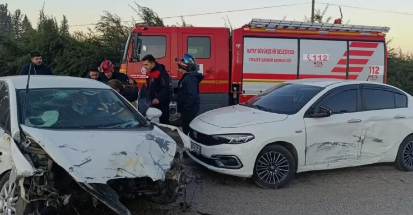 Hatay’da seyir halindeki otomobilin aynı istikamette başka bir otomobille çarpışarak karşı şeride geçtiği kazaya 5 araç karıştı. 4 kişinin yaralandığı kaza anı, anbean araç kamerasına yansıdı.