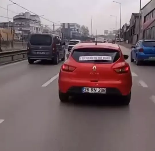 Bursa'da seyir halinde olan bir aracın arka camının üzerine asılan not, trafikteki diğer sürücüleri güldürdü.ursa'nın Osmangazi ilçesinde Ankara Yolu istikametinde şaşırtan bir boşanma sevinci görüldü.
