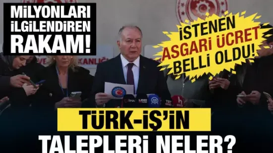 Türk-İş, toplantıya 5 dakika kala Çalışma ve Sosyal Güvenlik Bakanı Vedat Işıkhan’a kapalı bir zarf içinde taleplerini içeren mektup sundu. Türk-İş Başkan Yardımcısı Ramazan Ağar’ın götürdüğü talep listesinde zam oranı ya da istenen asgari ücrete ilişkin herhangi bir rakamsal veri yer almadı. Sözcü Gazetesi'nde yer alan habere göre Türk-İş’in Bakanlığa sunduğu taleplerin karşılanması halinde asgari ücretin yüzde 78.8 zamla 39 bin 525 liraya yükseltilmesi gerekiyor.