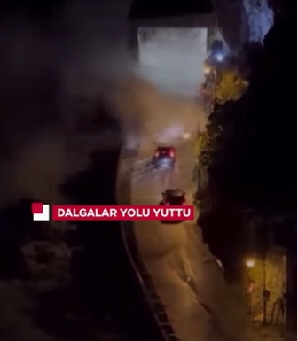 Yola vuran dev dalgalar araçları kaplarken, otomobiller denize sürüklenme tehlikesiyle karşı karşıya kaldı. Araç içindeki kişiler şans eseri olaydan yara almadan kurtuldu. Yetkililer, bölgedeki olumsuz hava koşullarının kıyı şeridini tehdit etmeye devam ettiği konusunda uyarılarda bulundu.
