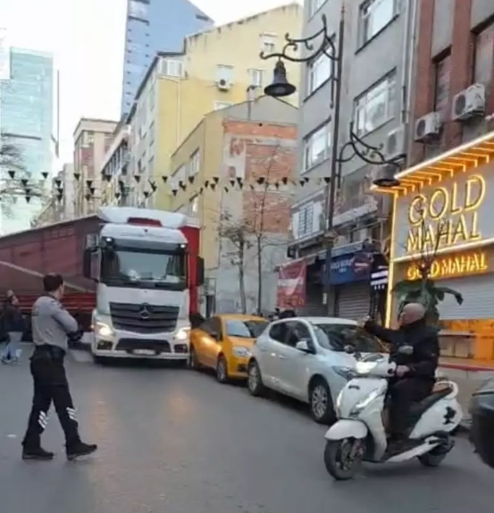 Edinilen bilgiye göre İzmir’den geldiği öğrenilen 35 EC 122 plakalı tırın şoförü, semtteki dar sokağa girdi.