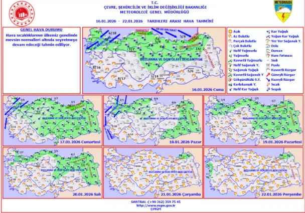 Pazar günü ise dondurucu soğukların Doğu Anadolu illerinde sıfırın altında 10 derecelere kadar gerileyeceği tahmin ediliyor.