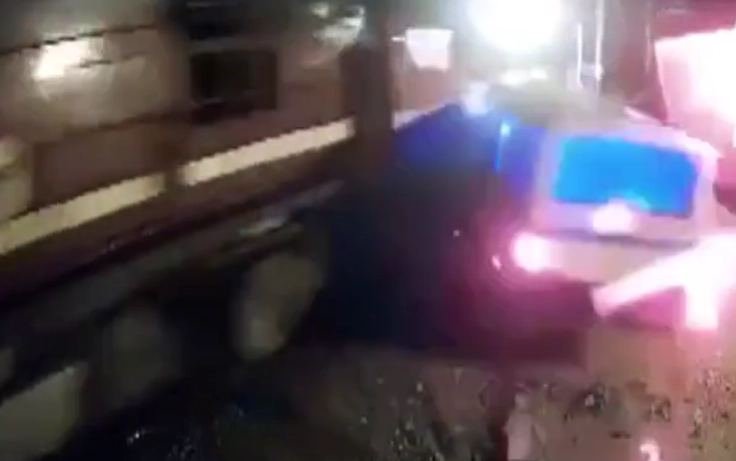 Tonlarca ağırlıktaki trenin geldiğini gören sürücü canını son anda araçtan inerek kurtardı.