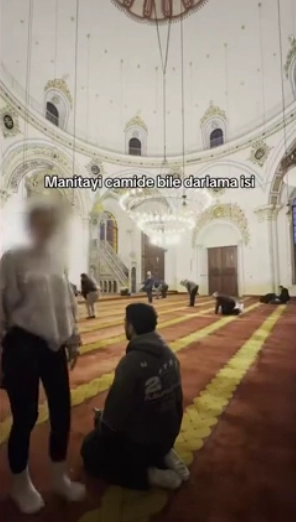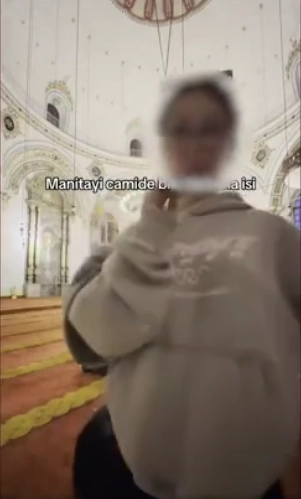 Görüntülerde, erkek şahıs huşu içinde namazını eda etmeye çalışırken, genç kadının kamera karşısına geçerek dans ettiği görüldü. Arkadaşının ibadet ettiği sırada, cami adabına uymayan hareketler sergileyen ve şarkı söyleyerek dans eden genç kadın, bu anları sosyal medya hesabından paylaştı. Videonun üzerine ise "Manitayı camide bile darlama isi" notunun düşüldüğü görüldü.