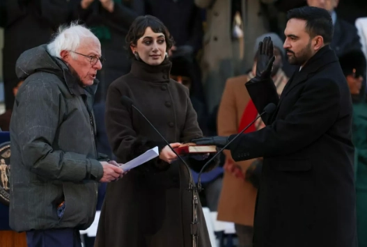 Seçim sürecinde genç Belediye Başkanı'nı açıktan destekleyen ABD Senatörü Bernie Sanders'in eşliğinde kürsüye gelen Mamdani, eşi Rama Duwaji'nin tuttuğu Kur'an-ı Kerim'e el basarak yemin etti.