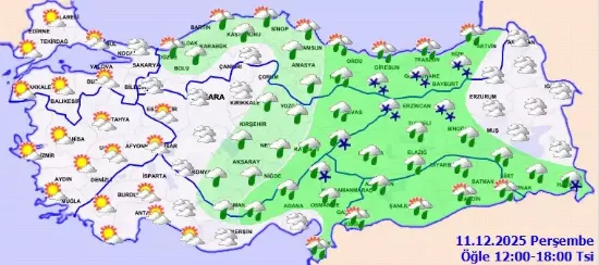 Çok bulutlu ve aralıklı yağmurlu, yüksekleri karla karışık yağmur ve kar yağışlı