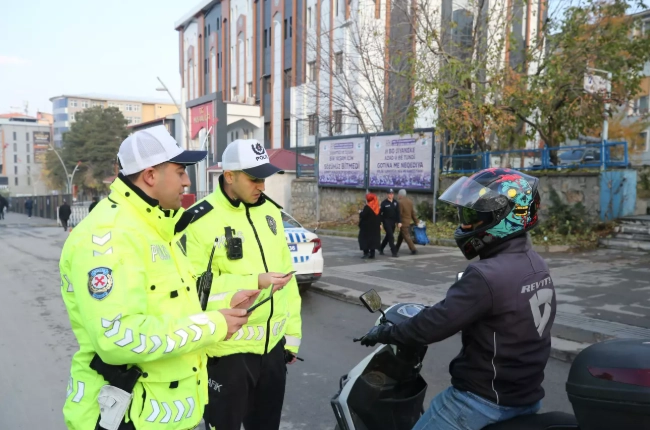 Muş'ta trafik uygulamasında elleri üşüyen motosikletli kuryeye eldivenini veren polis