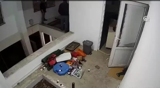 Kazanın yaşandığı anlar iş yerinin güvenlik kamerasına yansıdı.