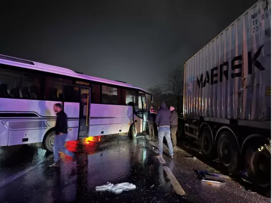 Sakarya'nın Geyve ilçesinde D-650 kara yolunda tır, otobüs ve tankerin de aralarında bulunduğu 6 aracın karıştığı zincirleme trafik kazasında 12 kişi yaralandı. Kaza nedeniyle yolda uzun araç kuyrukları oluştu.