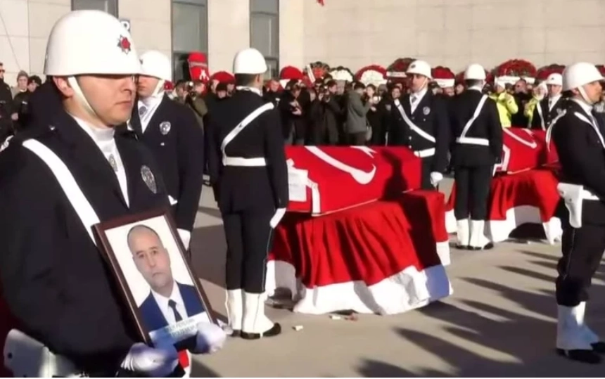 Yalova'daki operasyonda DEAŞ'lı teröristler tarafından açılan ateş sonucu şehit olan 3 polis için tören düzenleniyor.