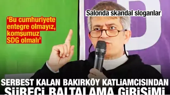 "Biji Serok Apo", "Şehid namirin" sloganlarının atıldığı salonda "kahraman" gibi karşılanan bebek katili Aktaş, terörist mezarlarıyla şehit asker mezarlarını bir tuttu: