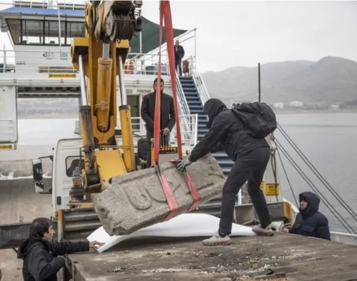 ESERİN TAŞINMASINDA FERİBOT KULLANILDI