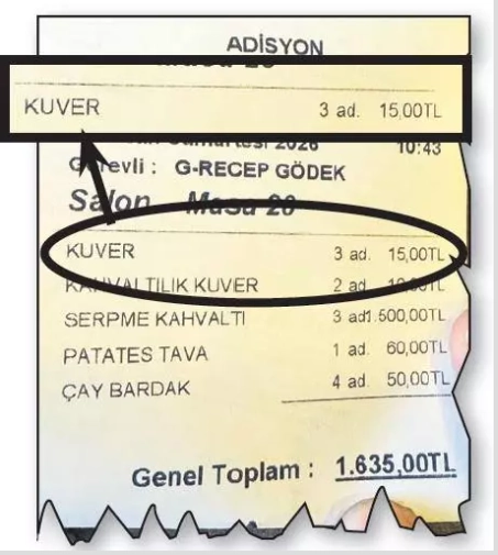 Hesaba ek, masa, servis ve kuver adı altında alınan ücretler son dönemde artık faturanın yüzde 30'una kadar çıktı. Öyle ki 1.000 TL'lik bir hesap, kuver ve servis ücreti adı altında 1.300 TL olarak fatura edilirken, 8-9 bin TL'lik bir hesap 13-14 bin TL'ye kadar yükseliyor. Menüdeki afaki fiyatlara ilave edilen bu ücretler vatandaşları çileden çıkarırken, bu soruna yönelik henüz net bir adım atılmamasının altında ise yasa ile yönetmelik arasındaki çelişki yatıyor.