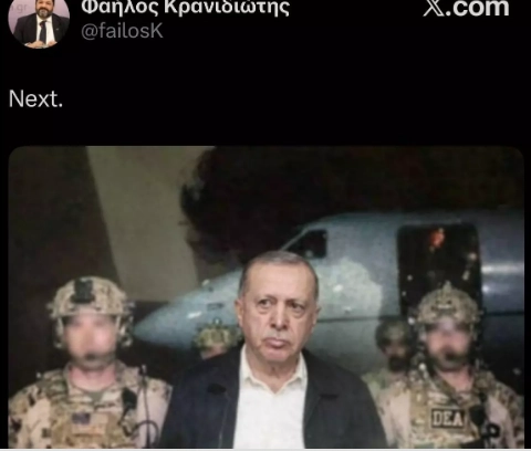 Söz konusu paylaşımda 'Sıradaki' diyerek Cumhurbaşkanı Erdoğan'ı yapay zeka kullanarak Maduro'nun yerinde gösterdi.