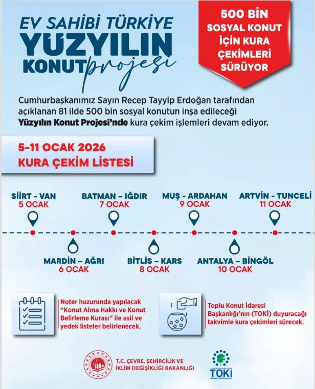 Başvuru süresi biter bitmez hızla hazırlıklarımızı tamamladık; sosyal konutlarımızın hak sahiplerinin belirlenmesi için kura çekimlerine 29 Aralık’ta deprem bölgemizden başladık. İlk olarak Adıyaman’da kuraları çektik.